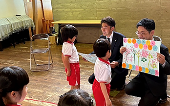 岡三証券グループでは、地域社会とのつながりを大切にし、未来を担う子どもたちへの支援を通じた社会貢献を目指し、フコク生命と共同で、おやさいスケッチブック※(岡三証券グループ作成)ならびに「THE MUTUAL Art for children」おやさいクレヨン(フコク生命作成)を保育園や幼稚園等へ贈呈しています。2023年度の活動開始以来、累計6,800セットが子どもたちに届けられました(2025年度末時点)。